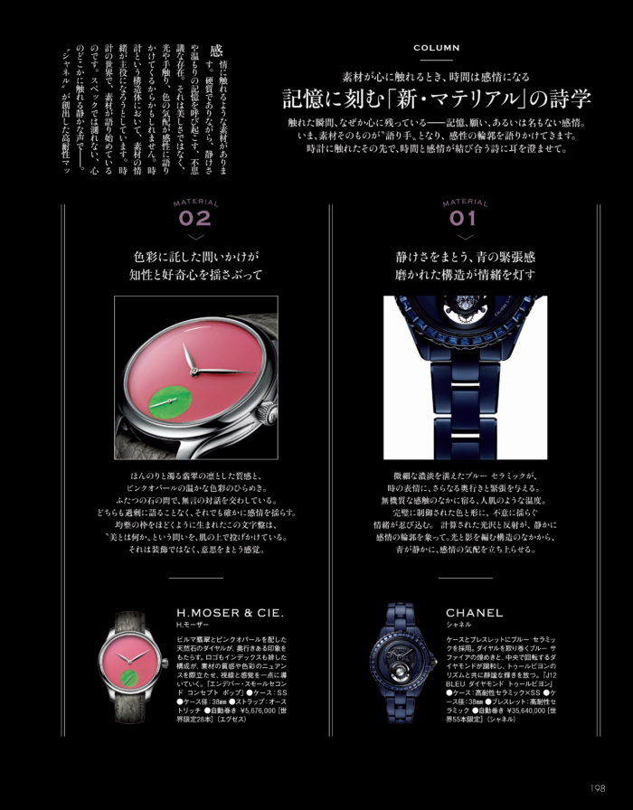 Precious 2025年9月号「時計特集:column 記憶に刻む『新・マテリアル』の詩学」