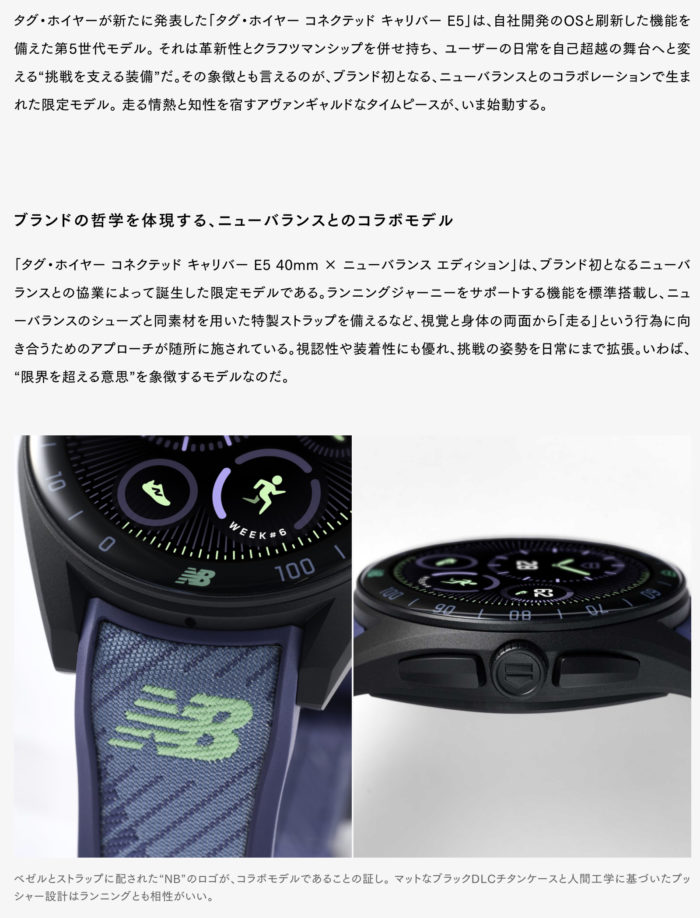 pen online『タグ・ホイヤーの最新コネクテッドウォッチは、走る情熱と腕時計の美学が宿る。ニューバランスコラボにも注目』TAG HEUER, NEW BALANCE