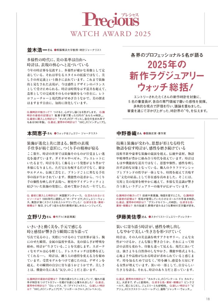 Precious 2026年1月号「Precious WATCH AWARD BOOK 2025」