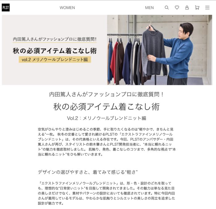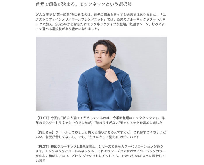 PLST×内田篤人. 2025AW「秋の必須アイテム着こなし術」vol.2 メリノウールブレンドニット編